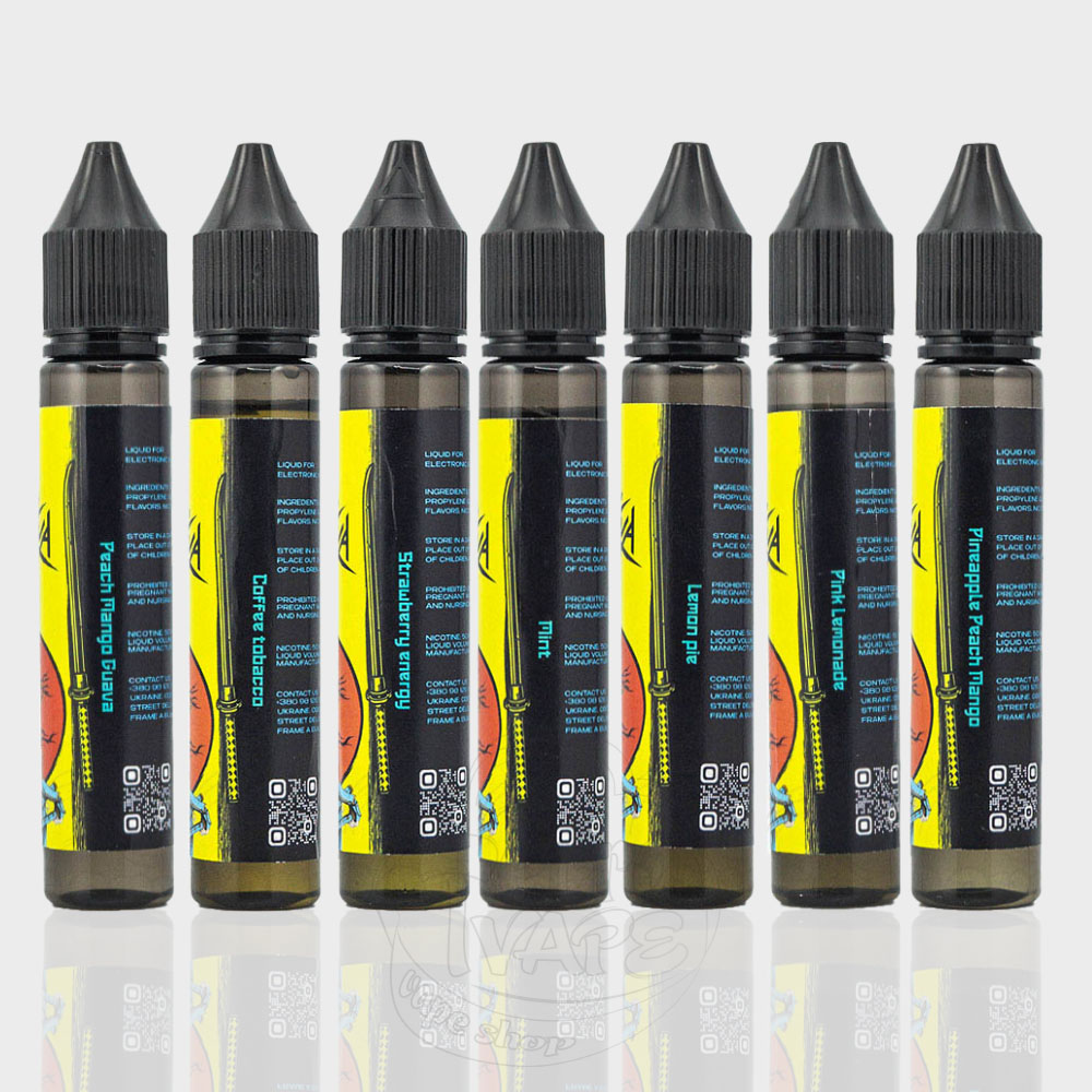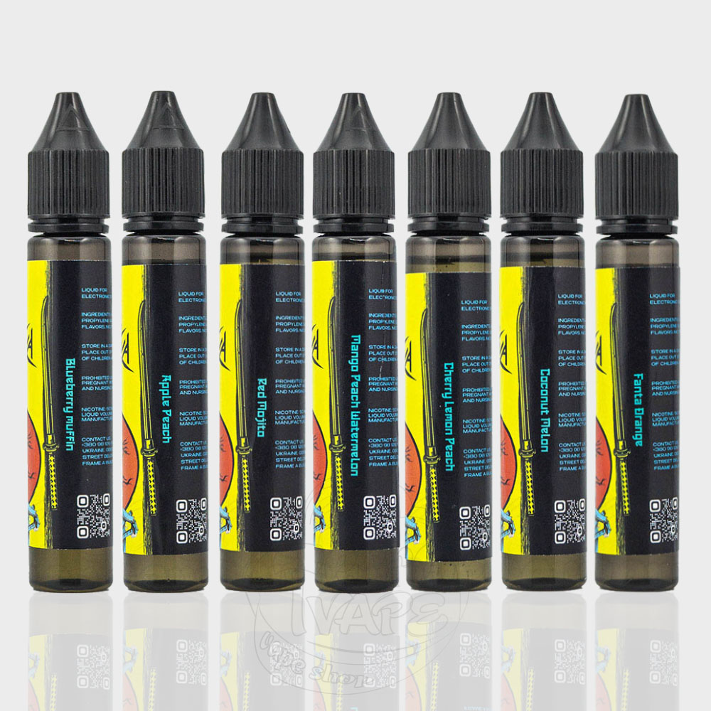 Выпускается в двух объемах 30мл и 10мл. Дизайн этикетки выполнен в едином азиатском стиле, соответствующим названию. Соотношение VG/PG - 50/50. Крепость 50мг/мл, что равняется 5% в большинстве одноразок.