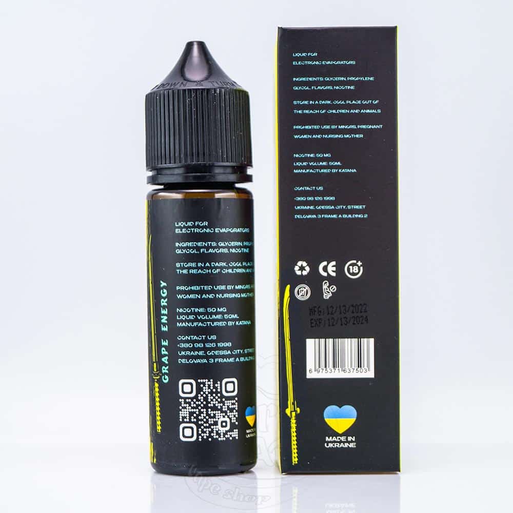 eight by Katana Salt Grape Energy 50ml 50mg - это жидкость на солевом никотине для электронных сигарет со вкусом заряжающего виноградного энергетика.