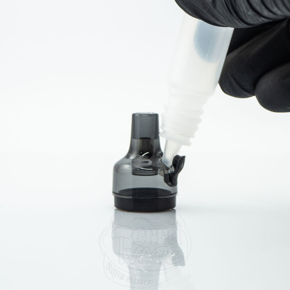 Передбачено зручну верхню заправку, завдяки чому картридж не потрібно виймати з пристрою, щоб залити жижу. Просто відкрийте чорну заглушку та заправте свою улюблену рідину.