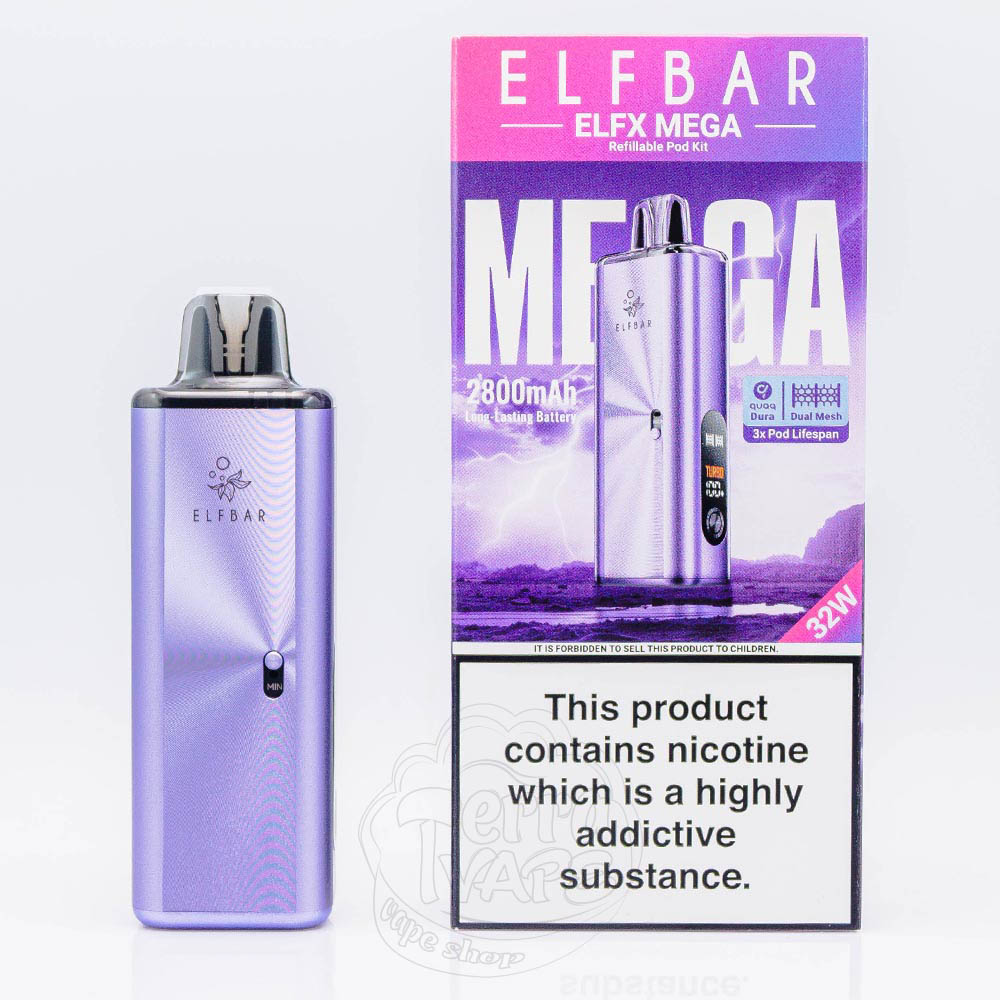 ELF BAR ELFX MEGA Pod Kit 2800mAh - це одна з багаторазових POD-систем лінійки ELFX від компанії Elf Bar, що вирізняється своїми збільшеними характеристиками, забезпечуючи довгу автономність та свободу від частого обслуговування. Оптимальну та тривалу роботу пристрою надає вбудований акумулятор ємністю 2800mAh. Батарея підтримує швидку зарядку від порту Type-C, кабель до якого не йде у комплекті. Максимальна вихідна потужність складає 32W, а її регулювання не передбачено.