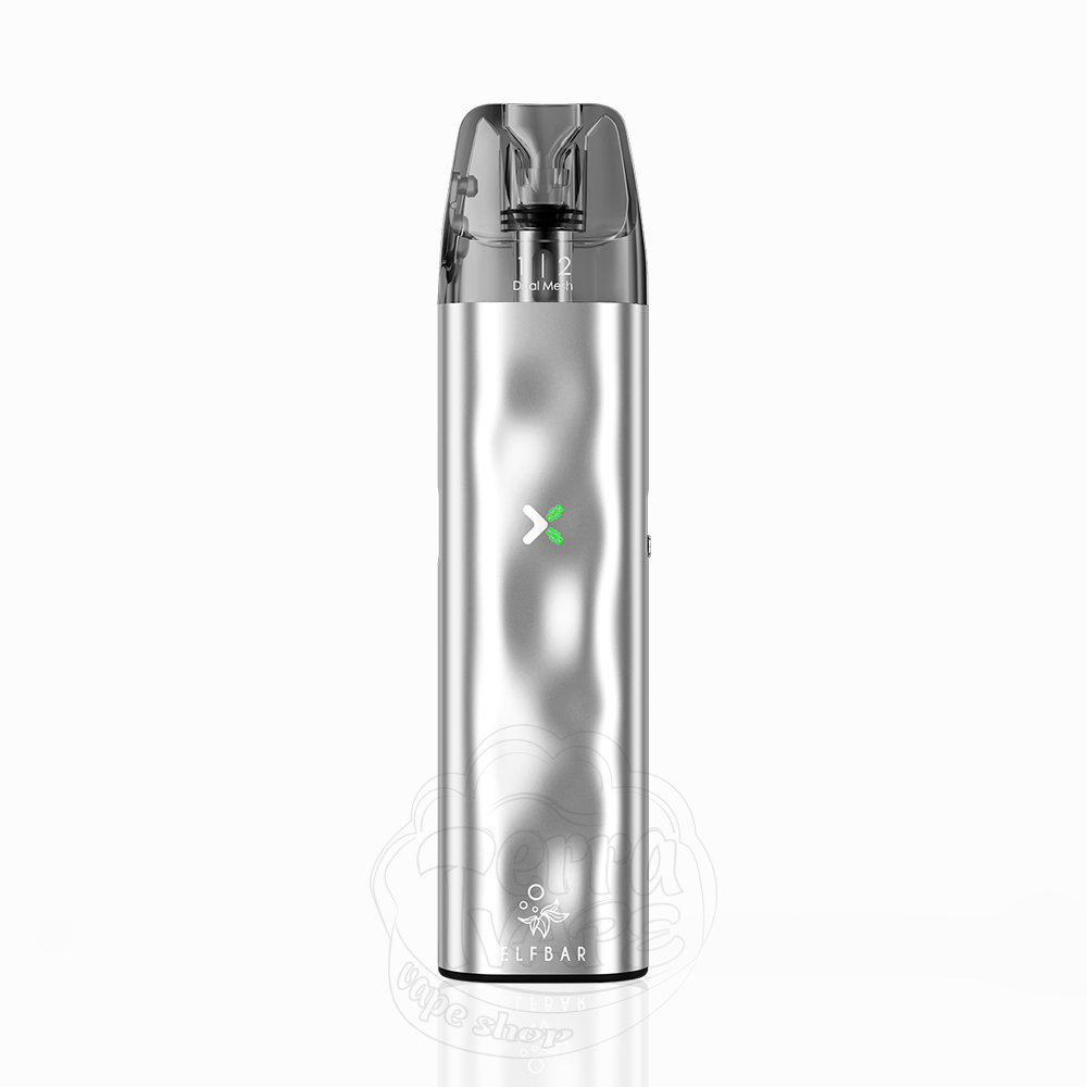 Elf Bar ELFX Mini Pod Kit 1000mAh Silver - это мини версия линейки многоразовых POD-систем ELFX, серебристого цвета от популярного производителя Elf Bar. В корпусе, который имеет волнистую текстуру, встроен аккумулятор емкостью 1000mAh. Максимальная мощность, которую выдает электронная сигарета, составляет 30W. Устройство совместимо со всеми картриджами линейки ELFX, а комплектуется тем, который имеет нагревательный элемент сопротивлением 0.8Ом, объем 3мл, а также верхнюю заправку. Активация у девайса автоматическая, через затяжку, так как на корпусе совсем нет ни кнопок, ни дисплея, а только регулятор тугости затяжки, порт Type-C и световой индикатор заряда.