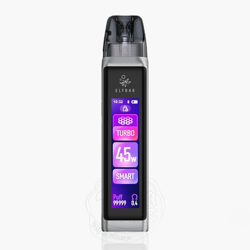 Elf Bar ELFX ULTRA Pod System Kit 1500mAh Silver - це оновлена версія багаторазової pod-системи серії ELFX, сріблястого кольору від відомої компанії Elf Bar. Працює від вбудованої батареї ємністю 1500мАг і заряджається через порт Type-C, 5V/2A. Працює зі змінними картриджами з вбудованим нагрівальним елементом і верхньою системою заправки. Має великий сенсорний дисплей з безліччю налаштувань, можливістю кастомізації і управлінням як в смартфонах. Також присутній повзунок регулювання тугості затяжки. Активується як від кнопки, так і автоматично (від затяжки).