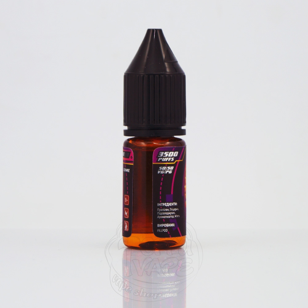 Fill Pod Salt 10ml - це лінійка рідин на сольовому нікотині для pod-систем від популярного українського виробника. Випускається в об'ємі 10мл, що ідеально підходить для тих, хто ще не визначився зі своїми смаковими уподобаннями. Флакон має яскравий дизайн, що запам'ятовується.
