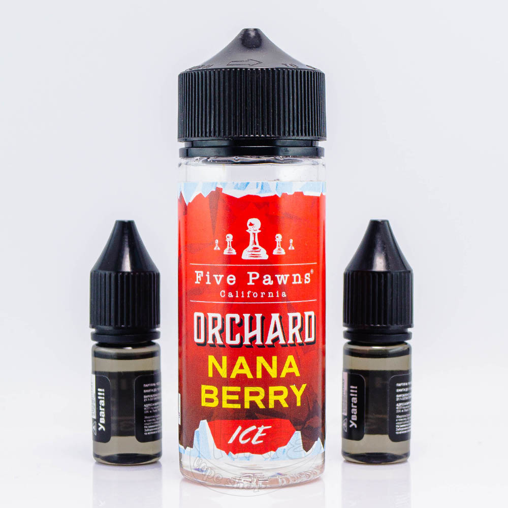 Five Pawns Orchard Blends Organic Shortfill Nana Berry ICE 120ml 3mg - класичне поєднання стиглої садової полуниці і солодкого банана сорту Кавендіш з холодком.
