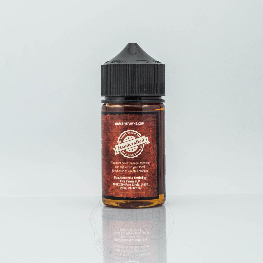 Five Pawns Organic - це рідини для вейпа на органічному нікотині від популярного американського виробника Five Pawns. Випускаються в пластикових флаконах об'ємом 60 мл. До складу входить нікотин найвищої якості, з відчутним ударом по горлу, а міцність може бути 3мг/мл, 6мг/мл або 12мг/мл. Співвідношення VG/PG становить 50/50, а в тютюновій серії (червона етикетка) - 70/30.
