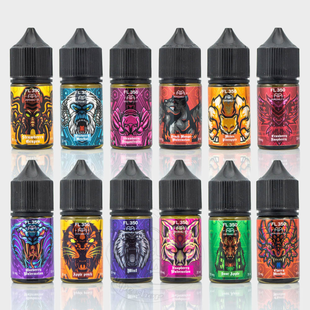 - FL350 Salt 30ml - відрізняється наявністю безнікотинових рідин для pod систем