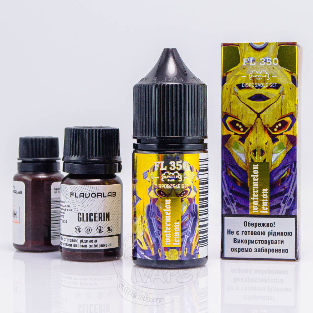 FL350 Salt - это набор для самостоятельного приготовления солевой жидкости от украинского производителя FlavorLab. Представлен в черных пластиковых флаконах объемом 30мл, на которые наклеена яркая глянцевая этикетка. Название было вдохновлено многоразовой pod-системой Elf Bar RF350, а дизайн - популярной продукцией одноразовых под-систем, в частности серией Lux.