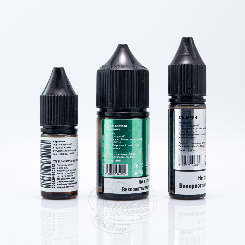 Набір ретельно продуманий і підготовлений для отримання ідеальної рідини для pod-систем. Підсумковий об'єм після змішування становить 30мл. Співвідношення VG/PG - 50/50.