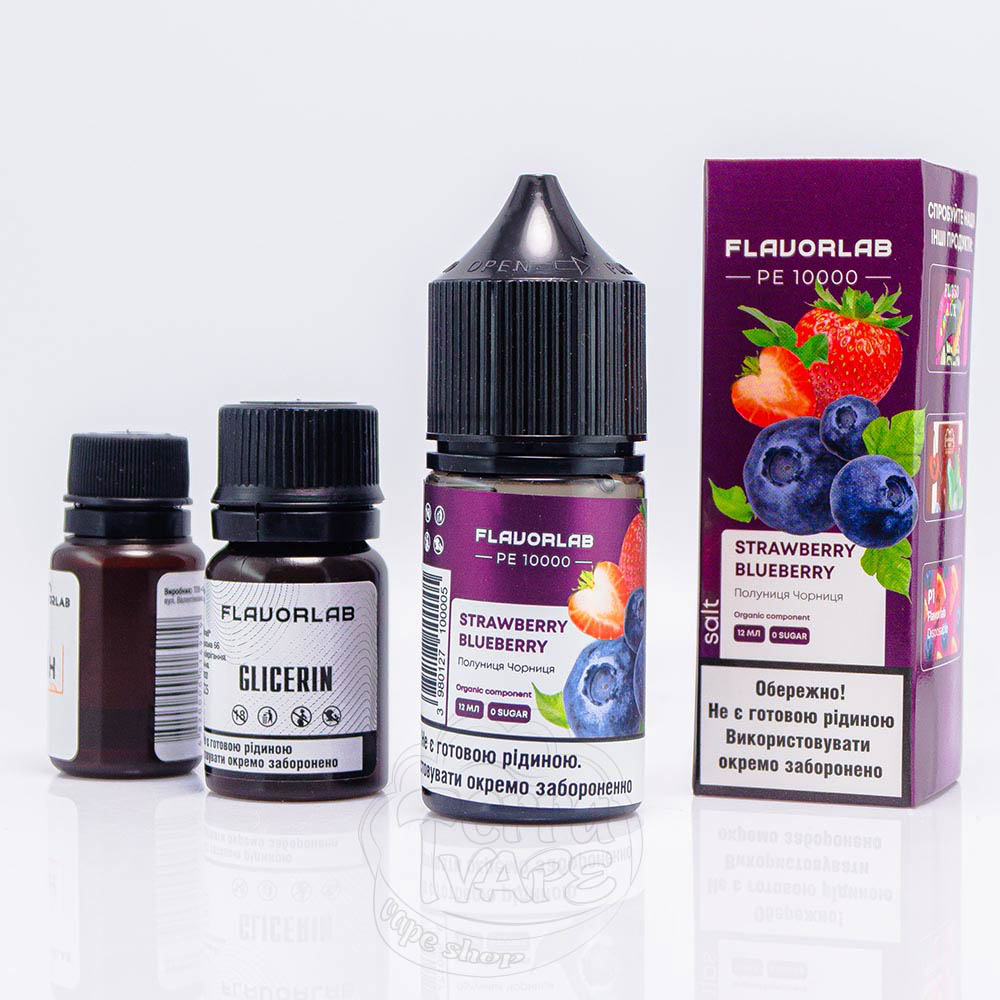 FlavorLab PE 10000 Salt Strawberry Blueberry 30ml 50mg - це набір для змішування рідини з кисло-солодким поєднанням полуниці та чорниці.