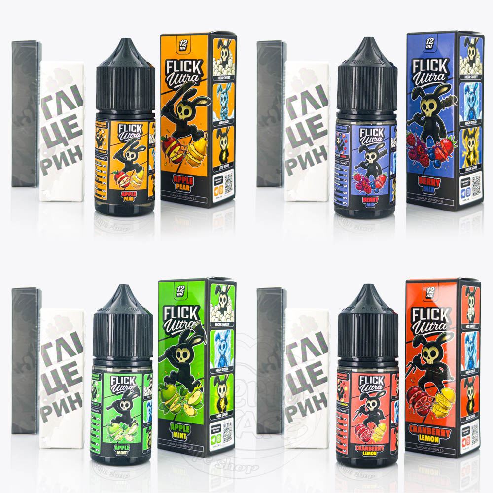 Flick Ultra Salt 30ml - це набори для приготування рідини для багаторазових електронних сигарет від українського виробника Flick. Кінцевий об'єм після замішування всіх компонентів становитиме 30мл. Співвідношення VG/PG складає збалансовані 50/50, що робить жижку ідеальною для використання на пристроях, що працюють на потужності до 30W, як, наприклад, популярні серед користувачів POD-системи. Міцність пропонується - 50мг/мл.