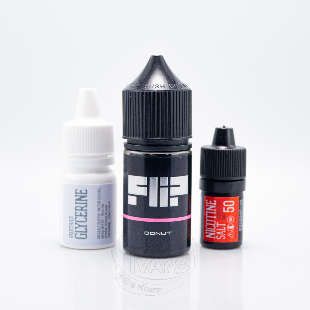 Flip Salt 30ml - це набір для самостійного приготування сольові рідини для pod-систем, зроблений українською фірмою LiqLab. Випускається в пластикових флаконах з дозатором-носиком, захистом від дітей і контролем першого відкриття. Об'єм флакона Фліп Салт складає 30мл. Співвідношення PG/VG - 50/50, а міцність може бути 25мг/мл або 50мг/мл.
