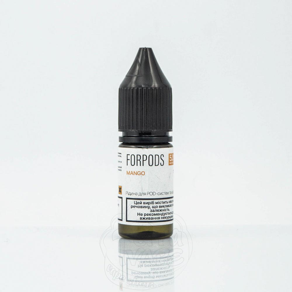 ForPods Salt Mango 10ml 50mg - рідина на сольовому нікотині зі смаком стиглого, тропічного манго з невеликою солодкістю на вдиху.