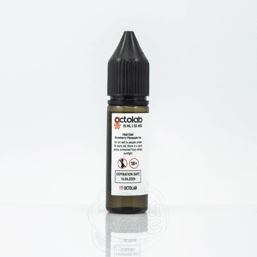 Fruitone Salt - це сольові рідини від перевіреного роками українського виробника Octolab. Випускаються в чорних пластикових флаконах з контролем першого відкриття. Етикетка виконана в мінімалістичному дизайні, який відображає тональність, що асоціюється з певним смаком. Співвідношення PG/VG - 50/50, а міцність сольового нікотину - 50 мг/мл. Такий рівень нікотину можна часто зустріти в одноразових pod системах, наприклад ElfBar, Lost Mary, iPlay.