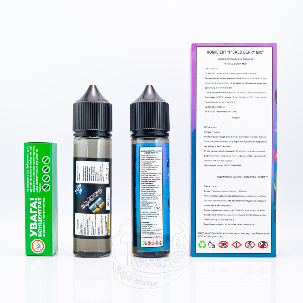 Fucked Organic - це набір для самостійного приготування органічної рідини для електронних сигарет від популярного українського виробника. Випускається в об'ємі 60 мл з впізнаваним дизайном етикетки, на якій зображені емоційні фрукти або ягоди. Міцність може бути: