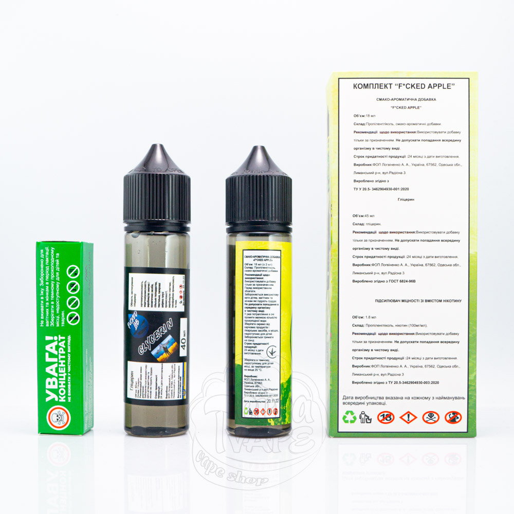 Fucked Organic - це набір для самостійного приготування органічної рідини для електронних сигарет від популярного українського виробника. Випускається в об'ємі 60 мл з впізнаваним дизайном етикетки, на якій зображені емоційні фрукти або ягоди. Міцність може бути: