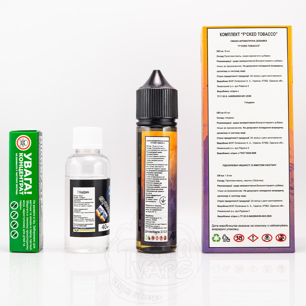 Fucked Organic - це набір для самостійного приготування органічної рідини для електронних сигарет від популярного українського виробника. Випускається в об'ємі 60 мл з впізнаваним дизайном етикетки, на якій зображені емоційні фрукти або ягоди. Міцність може бути: