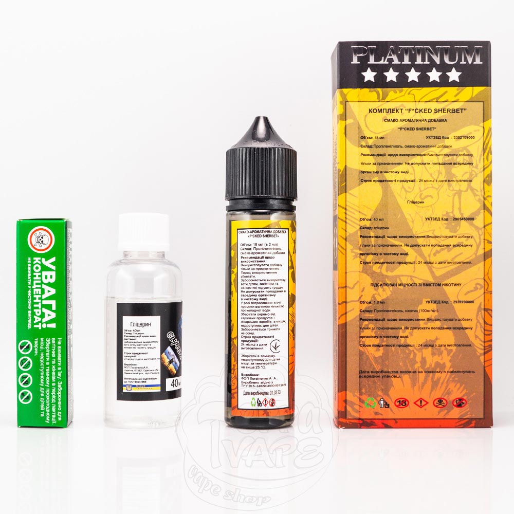 Fucked Platinum Organic - це набір для приготування органічної рідини для електронних сигарет українського виробництва. Випускається в об'ємі 60 мл, на етикетці якій фантастичні персонажі, що відображають суть смаку. Градація міцності: