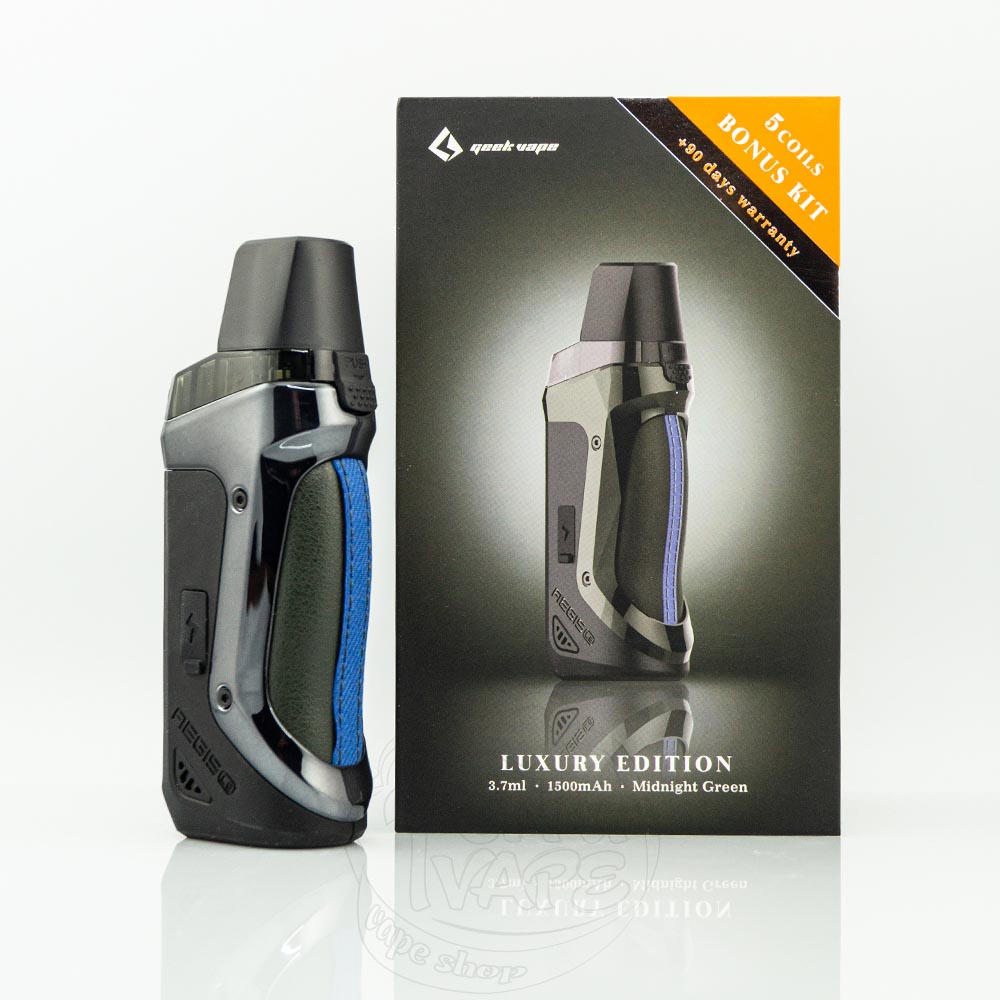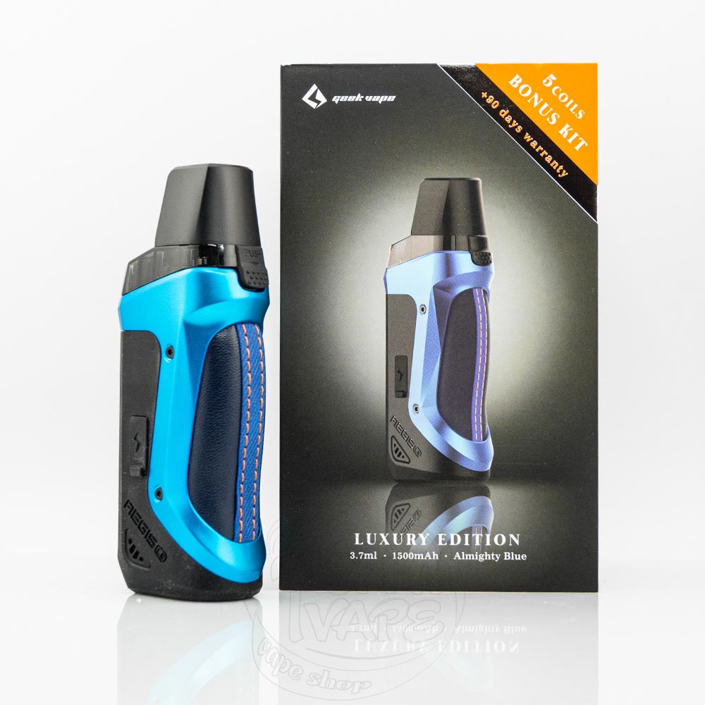 GeekVape Aegis Boost LE Bonus Pod Kit – это люкс-версия комплектации обычного Aegis Boost от компании Geekvape. Под система работает от кнопки, имеет встроенный аккумулятор на 1500мАч. Картридж со сменными испарителями, которых в комплекте аж 5 штук. Корпус защищен по стандарту IP67. Подойдет для новичка в качестве стартового набора.