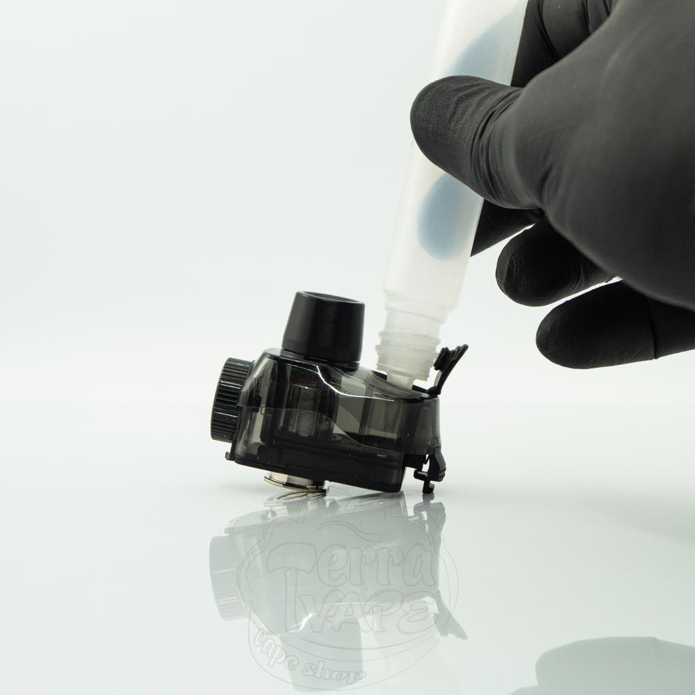 Заправляється зверху, тому ймовірність протікання зведена до мінімуму. Також плюсом такої системи заправки є відсутність необхідності виймати картридж із корпусу, щоб залити рідину для електронних сигарет.