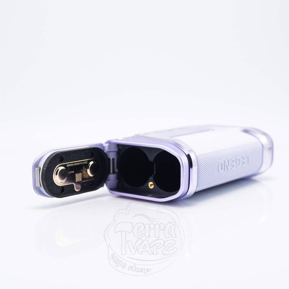 Для живлення Аегіс Легенд 3 потрібні дві батареї формату 18650. Зверніть увагу! Елементи живлення не входять до набору, їх потрібно купляти окремо! Придбати акумулятор за низькою ціною ви зможете в нашому вейп-шопі. Дверцята батарейного відсіку знаходяться на дні пристрою. Щоб відкрити їх, просуньте важіль, на якому зображена стрілка у відповідний бік. Після цього дверцята підстрибнуть завдяки пружині, яка фіксує механізм. Всередині розміщуються дві окремі труби для розташування акумуляторів. У кожній із комірок на дні знаходяться позначки з відповідною полярністю.