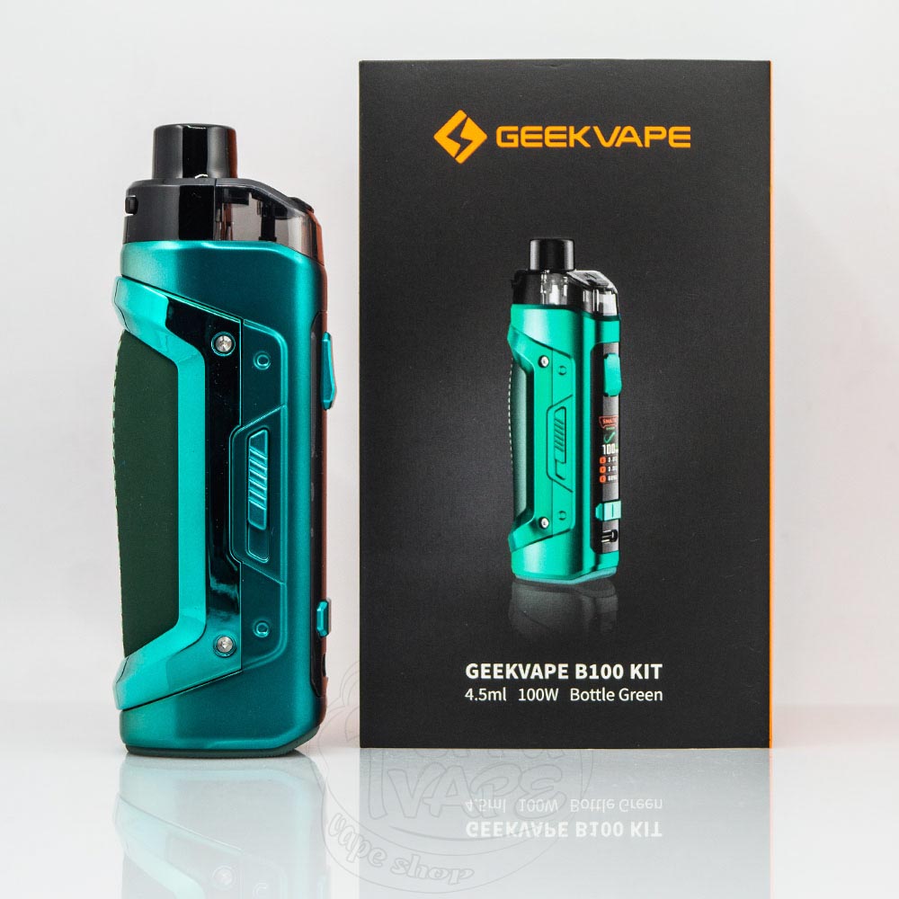 Geekvape B100 (Aegis Boost Pro 2) Pod Mod Kit 18650 Bottle Green - це електронна сигарета под-мод, зеленого кольору від компанії Geekvape, є продовженням лінійки Boost Pro. Працює від одного знімного акумулятора 18650 (НЕ ВХОДИТЬ В КОМПЛЕКТАЦІЮ) з максимальною вихідною потужністю 100W. Картридж працює зі змінними випаровувачами серії P і вміщує до 4.5 мл рідини для електронних сигарет. Оснащений зручною верхньою заправкою і системою верхнього забору повітря, завдяки чому досить надійно захищений від протікань. Чипсет забезпечує всі захисти для безпеки користувача, а також вміє працювати в декількох режимах.