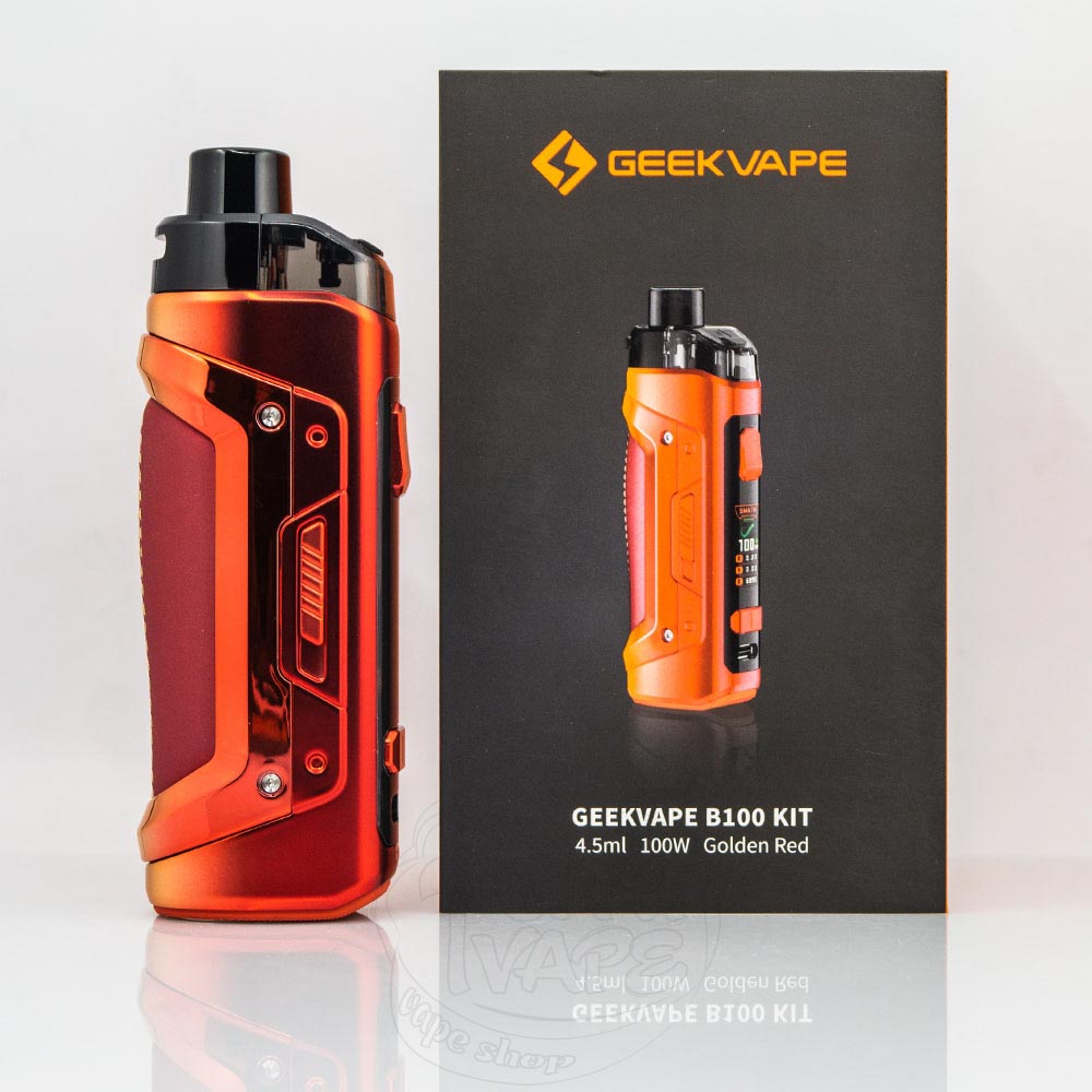 Geekvape B100 (Aegis Boost Pro 2) Pod Mod Kit 18650 Golden Red - это электронная сигарета под-мод цвета золотисто-красного градиента от компании Geekvape, является продолжением линейки Boost Pro. Работает от одного съемного аккумулятора 18650 (НЕ ВХОДИТ В КОМПЛЕКТАЦИЮ) с максимальной выходной мощностью 100W. Картридж работает со сменными испарителями серии P и вмещает до 4.5мл жидкости для электронных сигарет. Оснащен удобной верхней заправкой и системой верхнего забора воздуха, благодаря чему достаточно надежно защищен от протеканий. Чипсет обеспечивает все защиты для безопасности пользователя, а также умеет работать в нескольких режимах.
