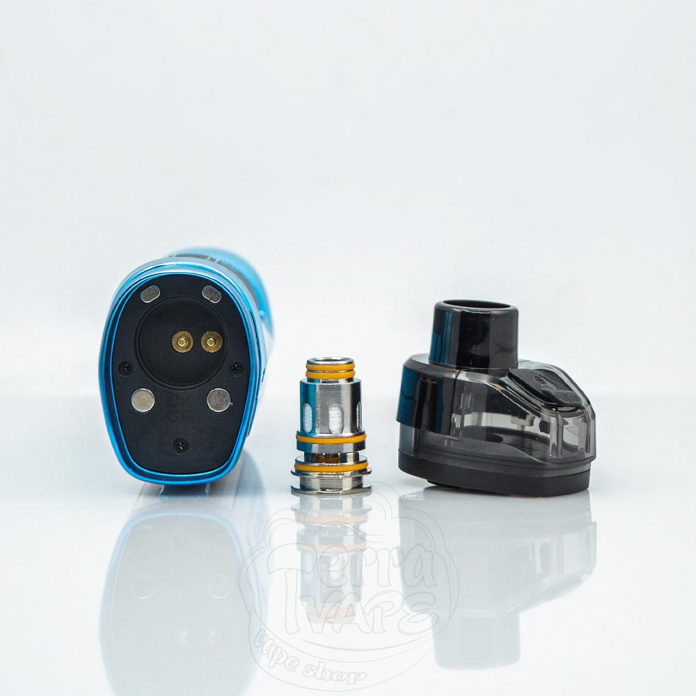 Картридж працює з випаровувачами серії P, які вставляються в спеціальний отвір на дні й утримуються за допомогою о-рингів.