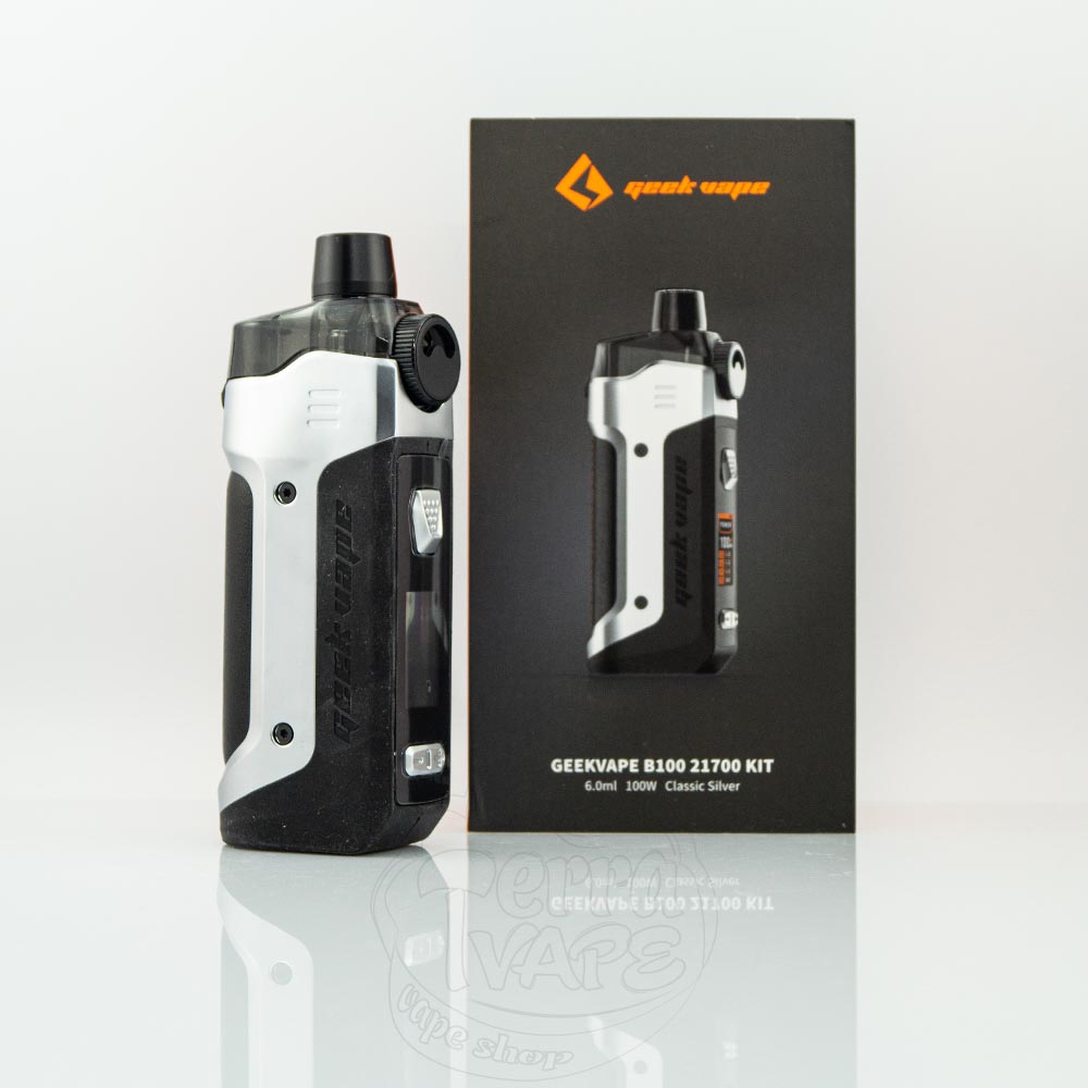 GeekVape B100 (Aegis Boost Pro Max) 21700 Kit – это pod mod на съемном аккумуляторе формата 21700/18650 с максимальной выходной мощностью в 100W. Работает на картридже емкостью 6мл с испарителями серии P. Подойдет для вейперов, которые ищут портативный, но мощный вейп.