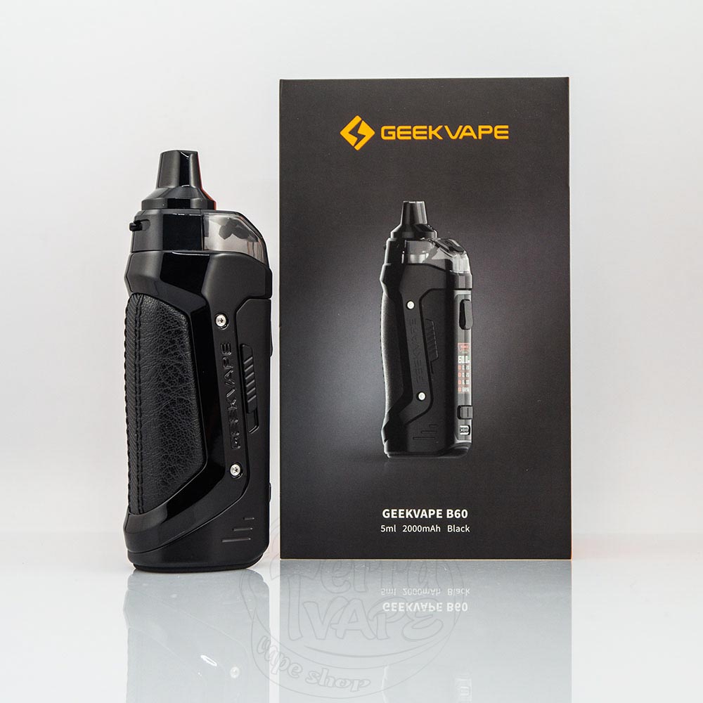 GeekVape B60 (Aegis Boost 2) Pod Kit Black – это под-система черного цвета, со встроенным аккумулятором на 2000мАч, емким картриджем на 5 мл, максимальной выходной мощностью в 60W и защитой по стандарту IP68 от компании GeekVape. Работает от кнопки.