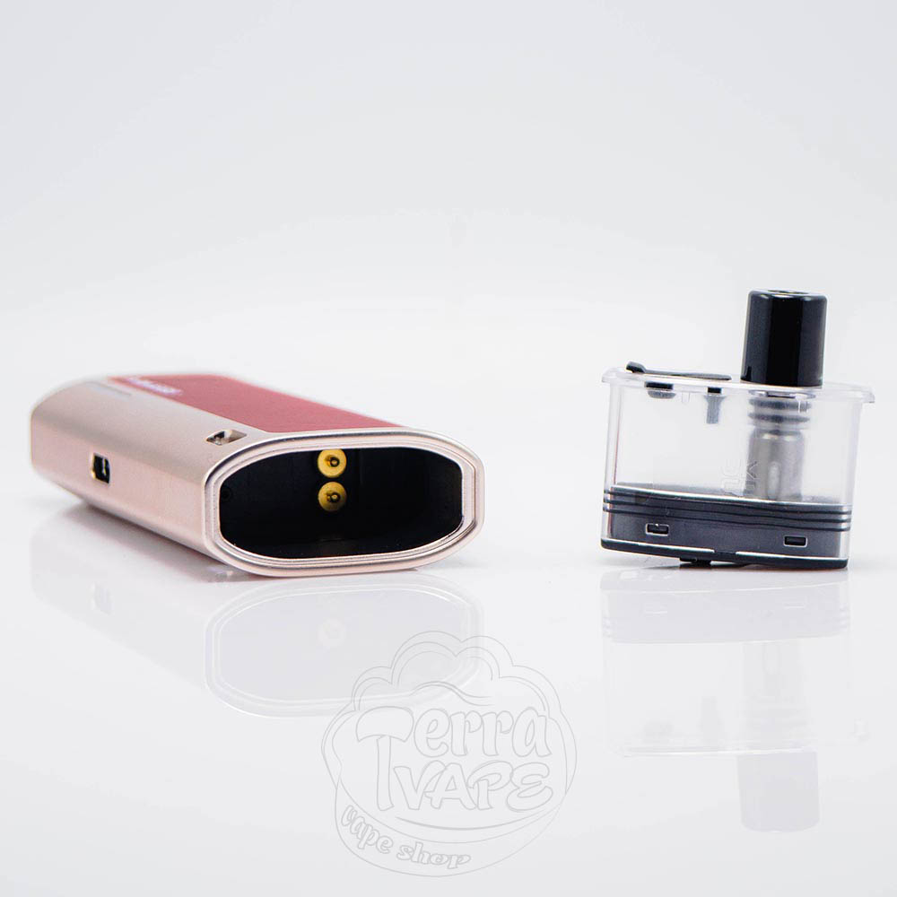 В комплекті йде з двома картриджами, кожен з яких має об'єм 4мл та нагрівальний елемент з опором 0.8Ом. Заправка верхня, а активація автоматична. На дні кожного картриджу є поворотний регулятор тугості затяжки.