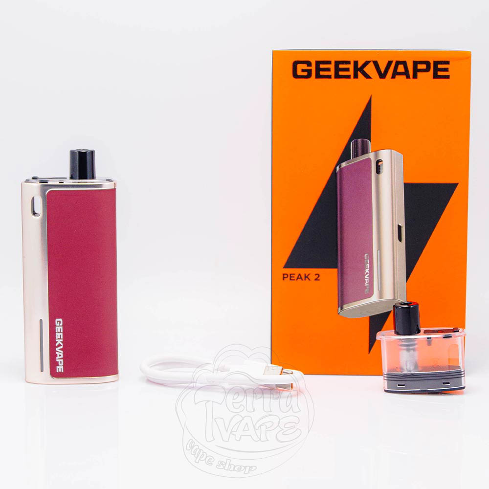 Geekvape Peak 2 Pod System Kit 1600mAh - це вдосконалена, друга версія багаторазової POD-системи Peak від відомого виробника Geekvape. Довгу автономність пристрою надає вбудована батарея, ємність якої становить 1600mAh, а також швидка зарядка 5V/2A через порт Type-C. Максимальну потужність девайс видаватиме 20W. Пристрій простий в використанні, так як не має ні кнопок, ні екрану.