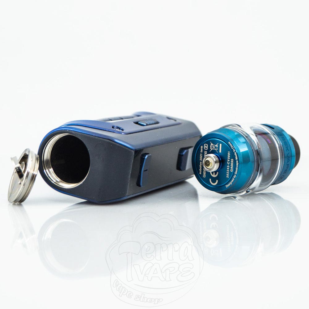 У даний комплект входить популярна затребувана модель атомайзеру на випарниках Z Sub Ohm Tank. Окрім яскравої передачі смаку, значною перевагою є зведення вірогідності протічок до мінімуму за рахунок системи верхнього обдуву. Отвір для заправки знаходиться під верхньою кришкою, яка відкручується у півоберту. Бак оснащений змінним 810 безорінговим дріп-типом. Діаметр бази складає 23 мм. Резервуар вміщує до 5,5 мл рідини для електронок, що дає змогу якомога довше насолоджуватися вейпінгом.