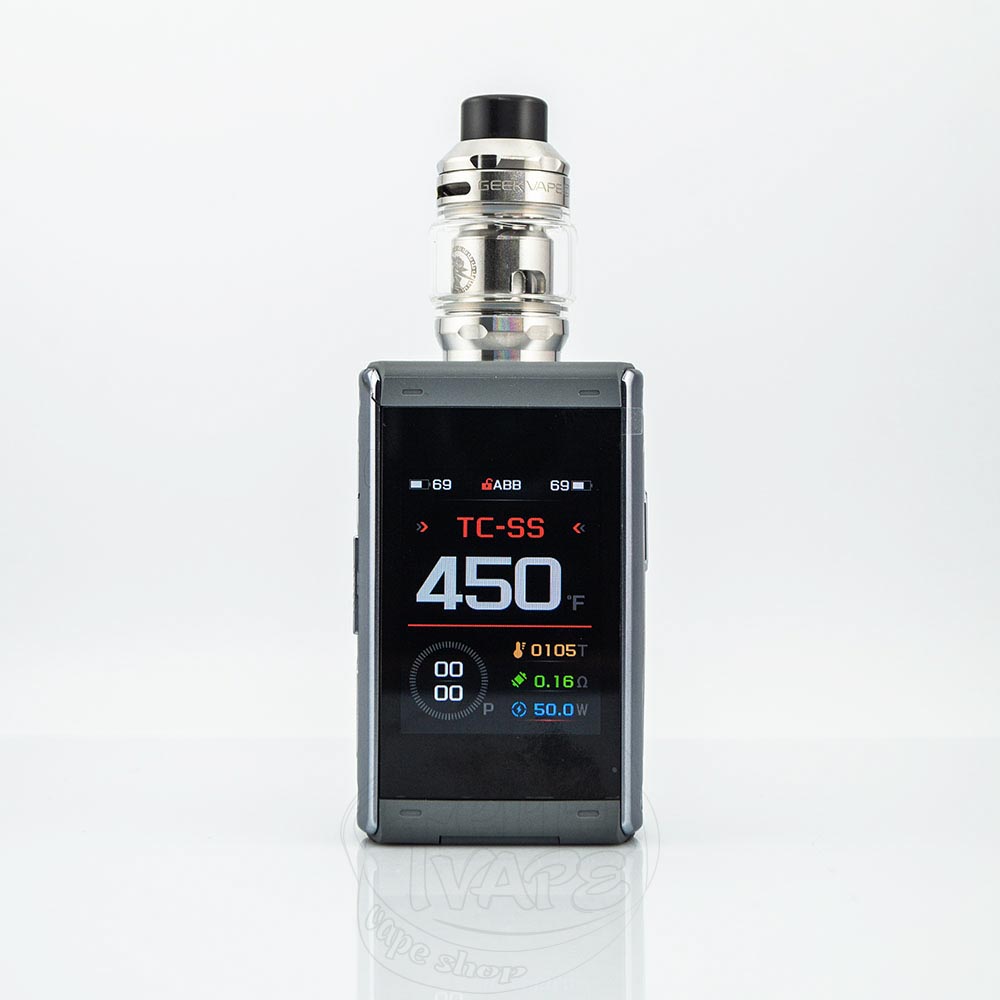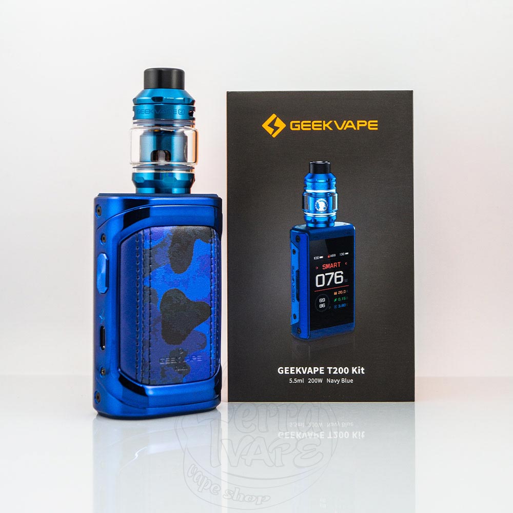 GeekVape T200 Mod Kit із баком Z Sub Ohm 2021 Tank Atomizer 5.5ml 200W – це вейп-набір, що складається з боксу мода T200 та бака на випарниках Z Sub Ohm Tank від компанії Geekvape. Працює від двох акумуляторів формату 18650 із максимальною вихідною потужністю 200W. Великий сенсорний екран дозволяє комфортно керувати налаштуваннями. Комплектний бак – на випарниках серії Zues передбачає використання на високій потужності, під вільну кальянну затяжку для генерації великих хмар смачної пари.