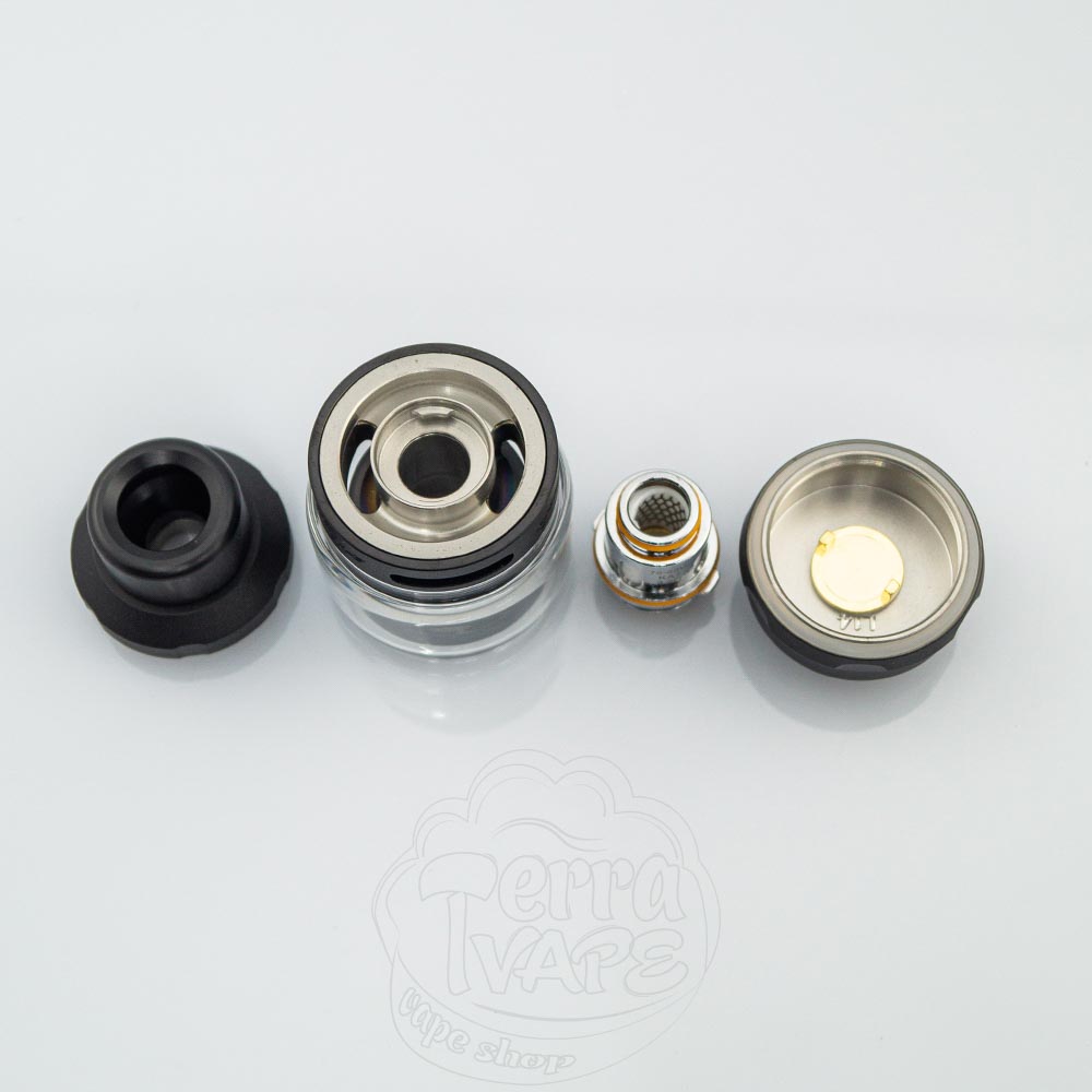 С комплектным бабл-стеклом бак вмещает 5мл жидкости, что является преимуществом, поскольку атомайзер предполагает использование на большой мощности, и расход жиж, соответственно, тоже будет большим.