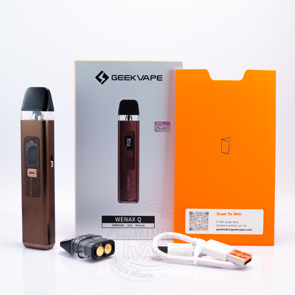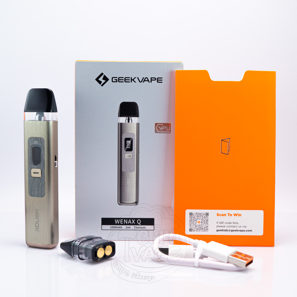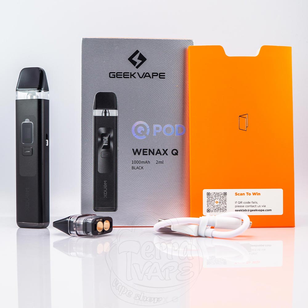 Geekvape Wenax Q Pod Kit 1000mAh - це продовження лінійки pod систем серії Wenax від популярної китайської компанії Geekvape. Девайс працює від вбудованого акумулятору ємністю 1000мАг з зарядкою через порт Type-C. Ємність змінного картриджу 2мл, а сам картридж оснащений верхньою заправкою. Пристрій має компактні розміри та міцний корпус і активується від затяжки або кнопки. Чудово підходить як для MTL, так і для RDL паріння. Вбудований OLED дисплей відображає всю необхідну інформацію а також дозволяє регулювати потужність для точного налаштування роботи Wenax Q під індивідуальні потреби. Підійде для вейперів з будь-яким досвідом користування.