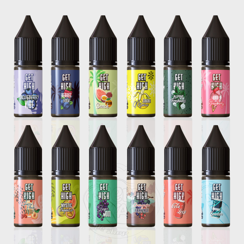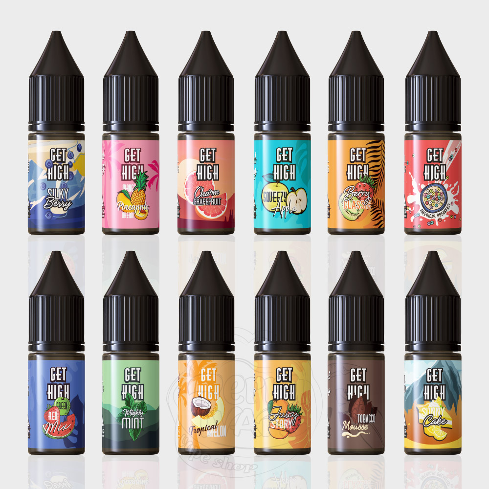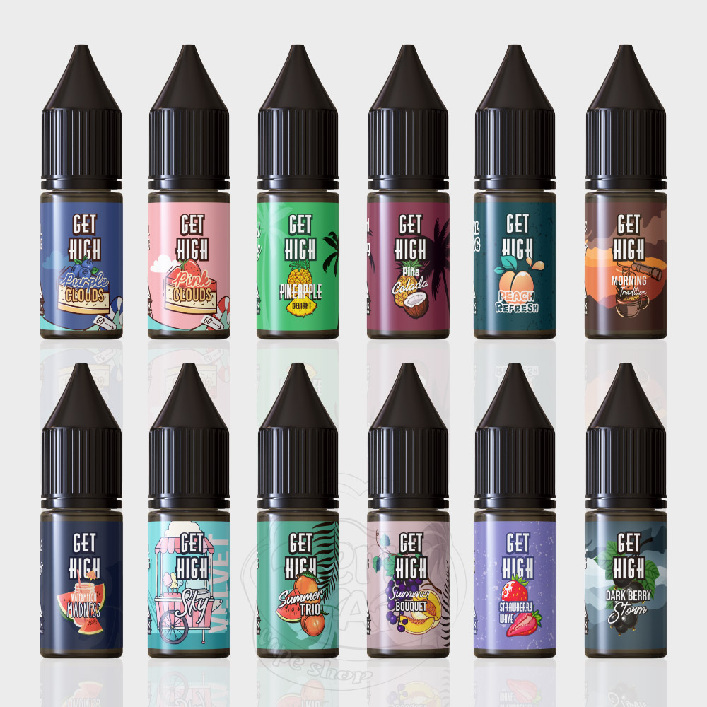 Get High Salt – це рідина на сольовому нікотині від українського виробника Black Triangle. Лінійка відрізняється досить відчутним нікотином, супер-яскравими смаками, що нагадують одноразові pod системи. Флакони 10мл поставляються в симпатичних картонних коробочках з яскравим дизайном, що відображає складові обраного смаку. Співвідношення PG/VG – 50/50, що робить рідину ідеальною для використання у малопотужних електронних сигаретах – pod системах.