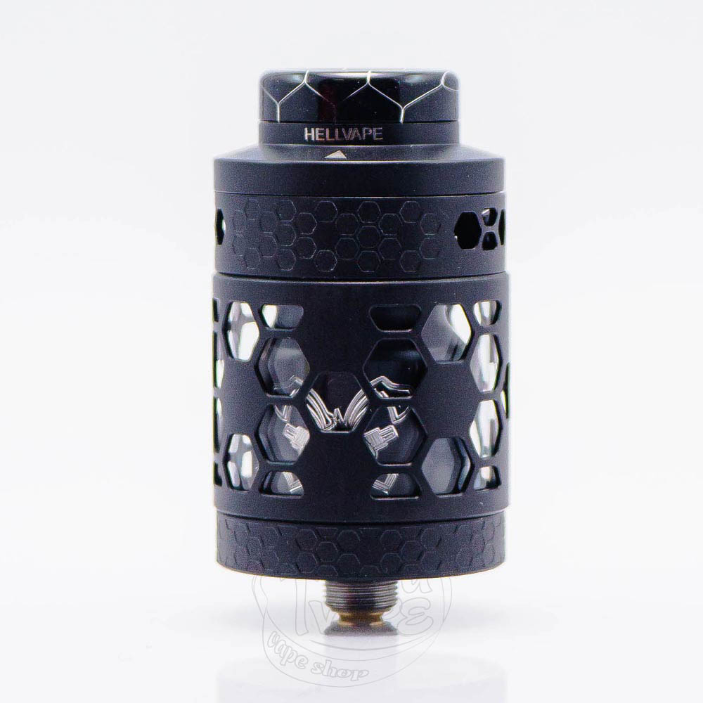 Hellvape Dead Rabbit 4 RTA Pro Tank Atomizer Matte Black - це про-версія четвертого обслуговуваного баку Dead Rabbit, чорного матового кольору від відомої в світі вейпінгу компанії Hellvape. Заправка верхня, об'єм резервуару становить 3.5мл, а з бабл склом - 5.5мл. База тут діаметром 26мм, а простора дека передбачає установку 2 спіралей. Обдув верхній та регулюється за допомогою обертання кільця обдуву. 810 дріп-тип знімний з можливістю заміни.