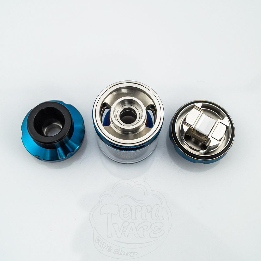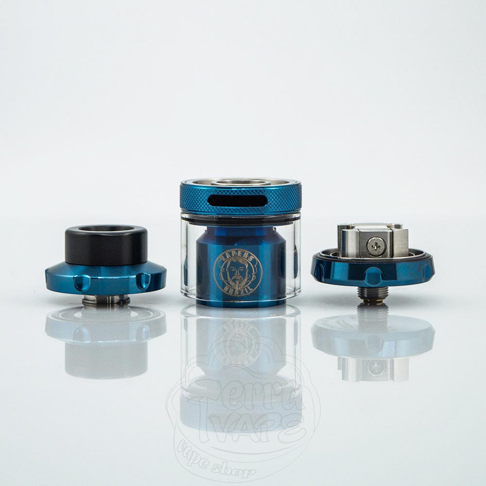 Що стосується дизайну, чарівність все ще працює - відомий логотип кролика, вигравіруваний на куполі, а також напис "M" нижче. На протилежному боці є логотип бренду Vapers Brazil. Вінчає цей атомайзер знімний 810 дріп-тип.