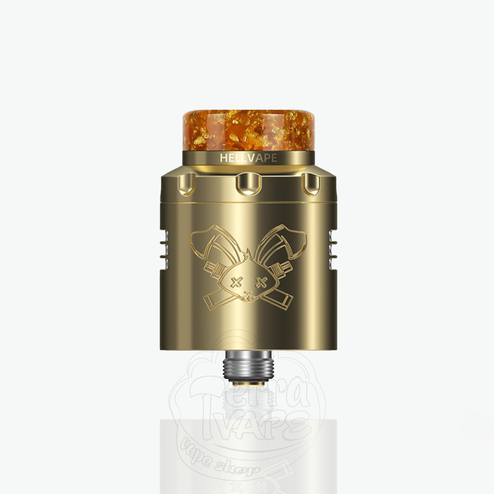 HellVape Dead Rabbit V3 RDA Gold - це третя версія "мертвого кролика", золотистого кольору від компанії HellVape. Дріпка розрахована на встановлення 2 спіралей, має діаметр 24мм. Оновлені стійки та обдув спіралі позитивно вплинули не лише на обслуговування, а й на смакопередачу в цілому.