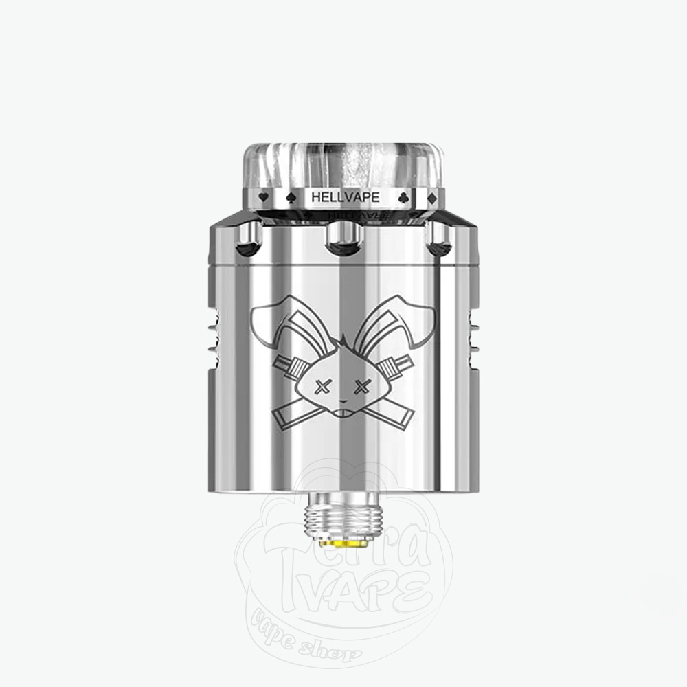 HellVape Dead Rabbit V3 RDA Shiny SS - це третя версія "мертвого кролика", сріблястого кольору від компанії HellVape. Дріпка розрахована на встановлення 2 спіралей, має діаметр 24мм. Оновлені стійки та обдув спіралі позитивно вплинули не лише на обслуговування, а й на смакопередачу в цілому.