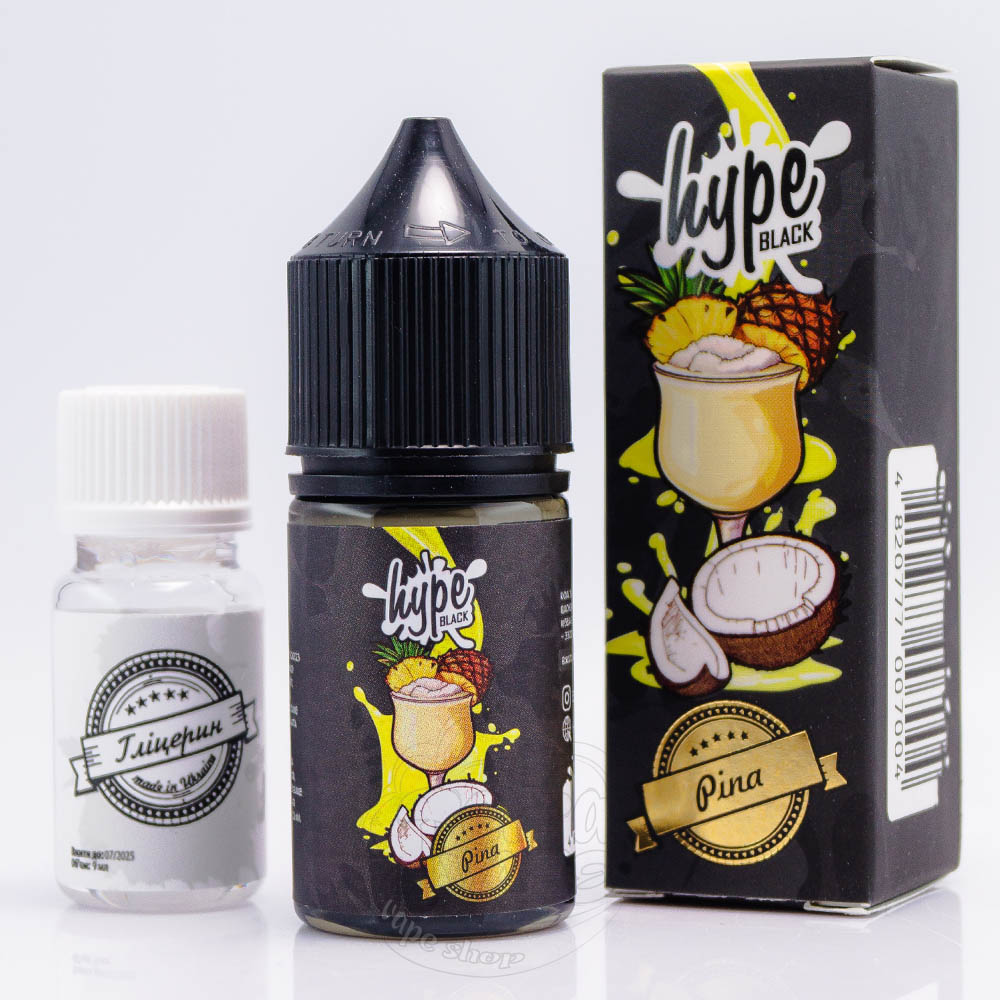 Hype Black Salt Pina 30ml 50mg - це набір компонентів для замішування рідини зі смаком тропічного коктейлю Піна Колада - дует ніжного кокосу та кисленького ананасу.