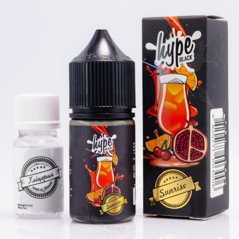 Hype Black Salt Sunrise 30ml 50mg - це набір для самостійного приготування жижки зі смаком прохолодного коктейлю із терпкого гранату та стиглої вишні, доповненого цитрусовими нотками апельсину.