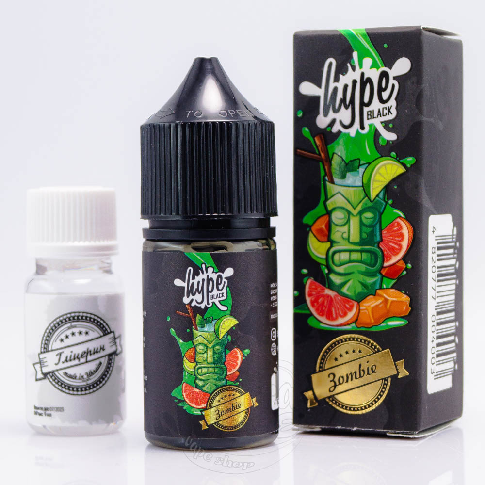 Hype Black Salt Zombie 30ml 25mg - це комплект для приготування рідини для паріння з освіжаючим смаком лайму та грейпфруту, доповнений ноткою солодкуватої м'яти.