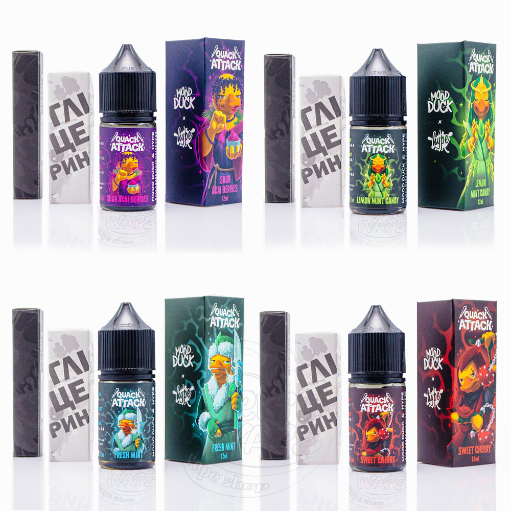 Hype x MoodDuck Quack Attack Salt 30ml - це лінійка наборів для самостійного замішування рідини, розроблена в колаборації двох іменитих виробників: Hype та MoodDuck. Першого ви можете впізнати по популярним наборам: