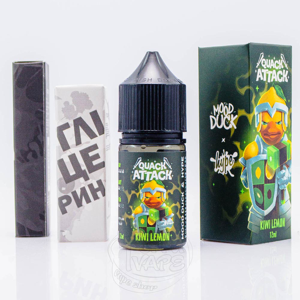 Hype x MoodDuck Quack Attack Salt Kiwi Lemon 30ml 50mg - це набір для приготування рідини з освіжаючим смаком соковитого ківі та вираженою лимонною кислинкою.