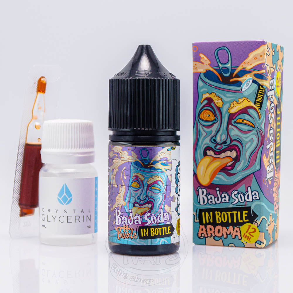 In Bottle Puzzle Salt Baja Soda 30ml 50mg - незвичайний смак газованого напою, що поєднує в собі цитруси, кокос, аніс і кардамон з легким вершковим присмаком.
