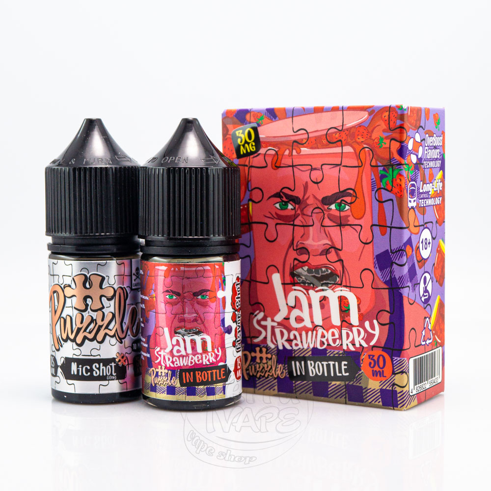 In Bottle Puzzle Salt Jam Strawberry 30ml 30mg - це набір рідини з кисло-солодким смаком полуничного джему.
