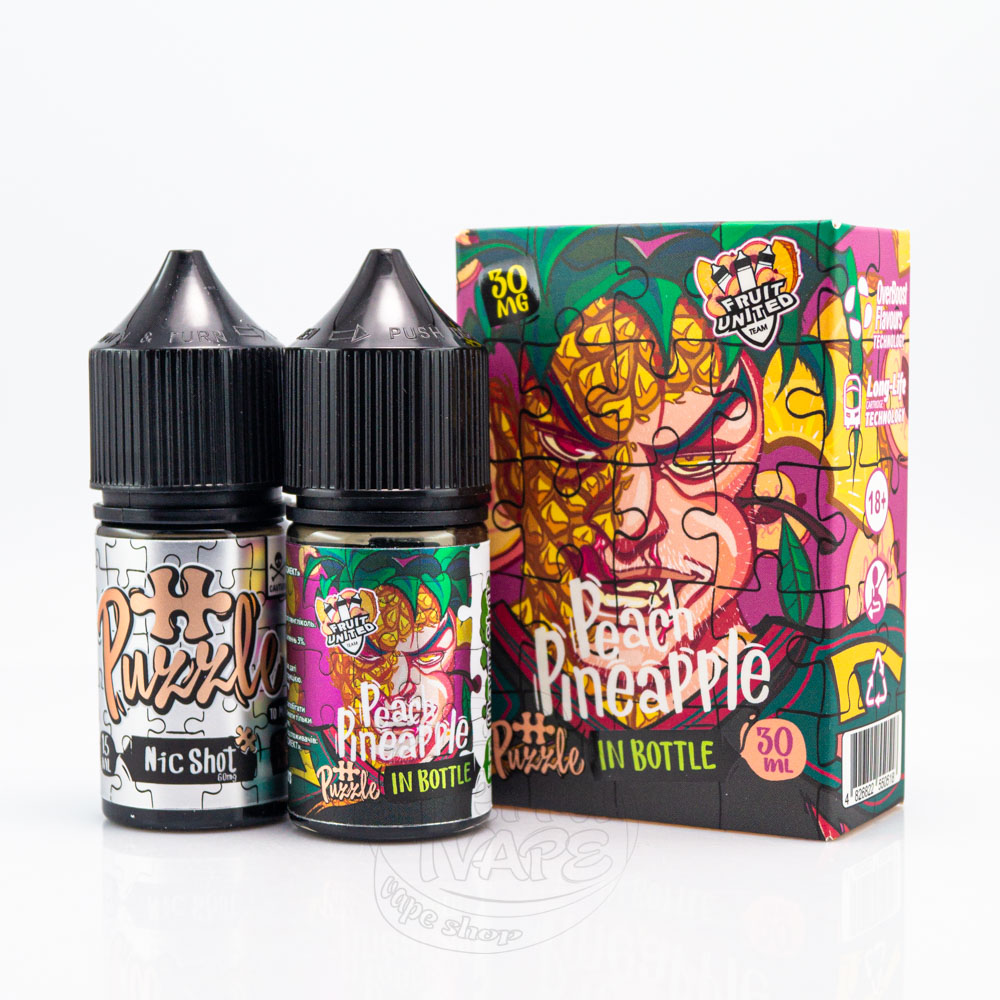 In Bottle Puzzle Salt Peach Pineapple 30ml 30mg - смак чудового кисло-солодкого поєднання персика з ананасом.