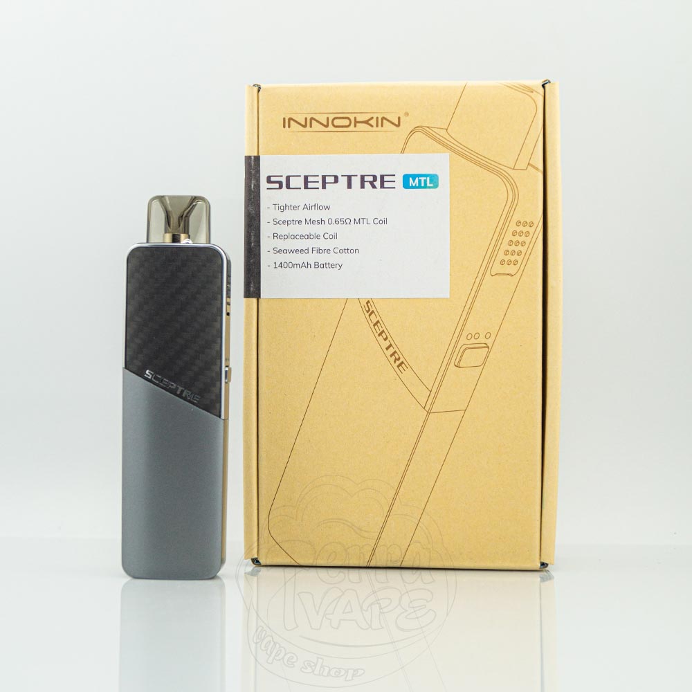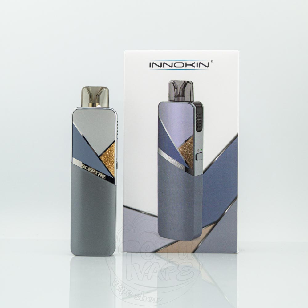 Innokin Sceptre Pod Kit 1400mAh 3ml - це под-система з вбудованим акумулятором на 1400мАч від компанії Innokin. Працює на картриджах ємністю 3мл зі змінними випарниками. Має регулювання потужності та тугості затяжки.