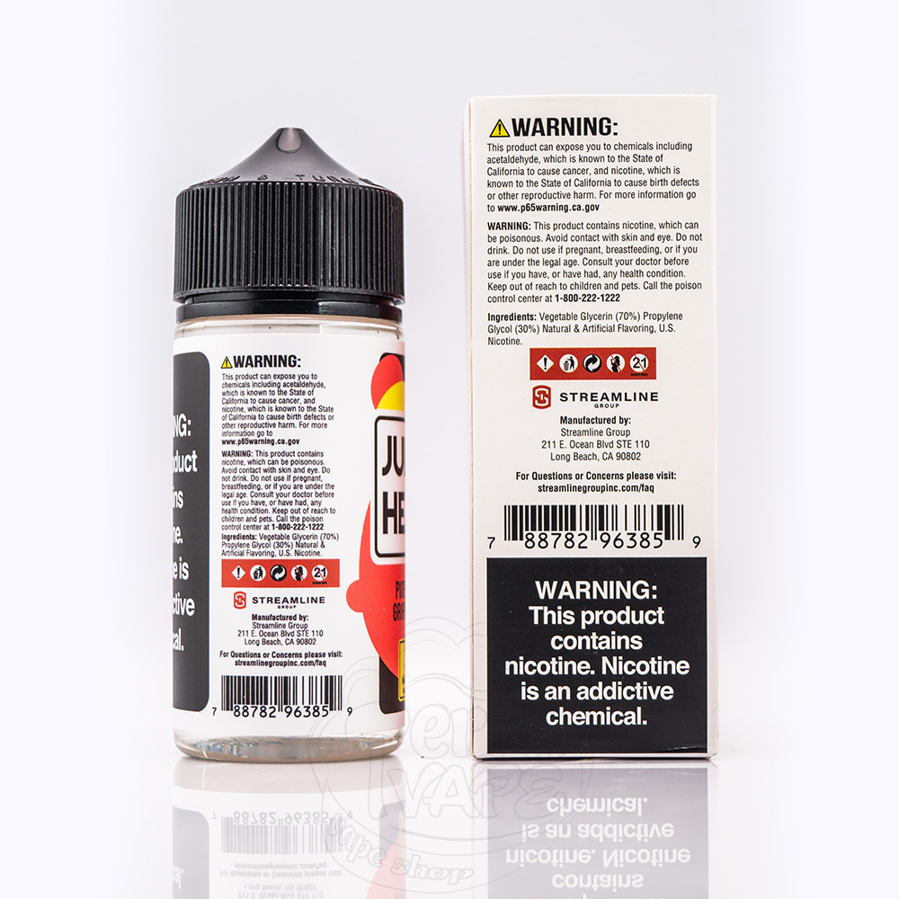 Juice Head Organic 100ml - це американська рідина для електронних сигарет на нікотині органічного походження. Продається у пластиковому флаконі 100мл з системою контролю першого відкриття. Етикетка має абстрактний дизайн з двома акцентними кольорами, які наштовхують на думку про смак, що знаходиться всередині.